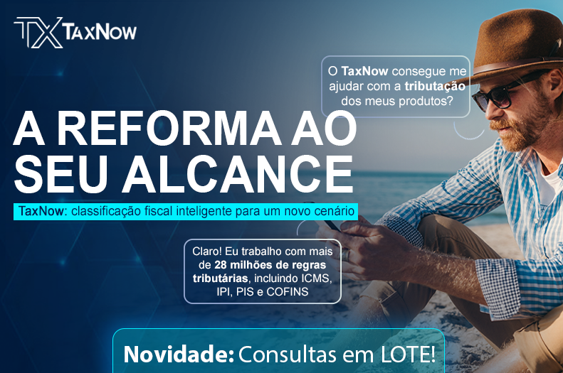 Imagine consultar em lote seus NCMs em segundos e facilitar sua rotina nessa nova fase! Com a chegada da Reforma Tributária — que começa em poucas semanas e unificará os tributos em IBS, CBS e IS — classificar produtos corretamente se tornou essencial. O TaxNow é a plataforma que revoluciona a forma como empresas e profissionais contábeis classificam produtos, oferecendo uma solução moderna, segura e 100% alinhada com a legislação. E não para por ai, com o TaxNow você garante velocidade e precisão na apuração de tributos! Consulte dezenas de NCMs em segundos, realize cálculos em lotes e ganhe eficiência em sua rotina fiscal. Simplifique processos, reduza erros e garanta mais segurança para o seu negócio. Experimente agora o TaxNow e descubra uma nova forma de lidar com a tributação! |